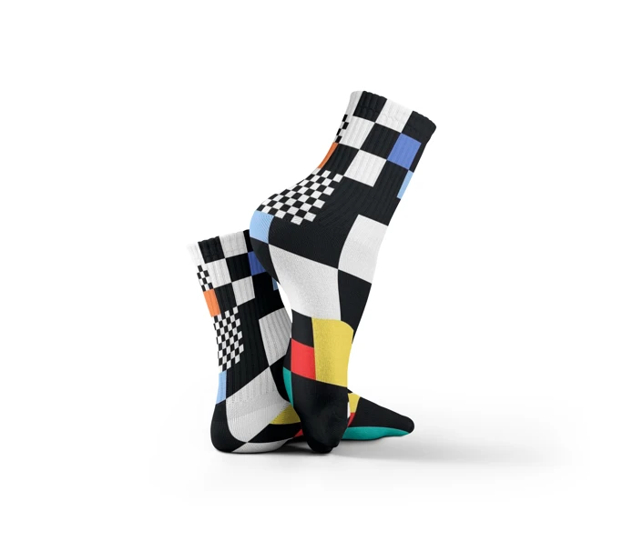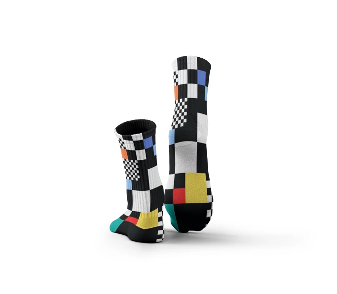 جوارب موندريان مستوحاة من الفن التجريدي الكلاسيكي بخطوط هندسية دقيقة وألوان أساسية جريئة، تجمع بين الأبيض والأسود بلمسات من الأزرق، الأحمر، والأصفر في توازن يخطف النظر من أول خطوة تصميمها يوصل إحساس الجرأة والرقي في آن واحد، لكل من يحب التفاصيل اللي تفرّق وتعبّر عن ذوق فني حقيقي