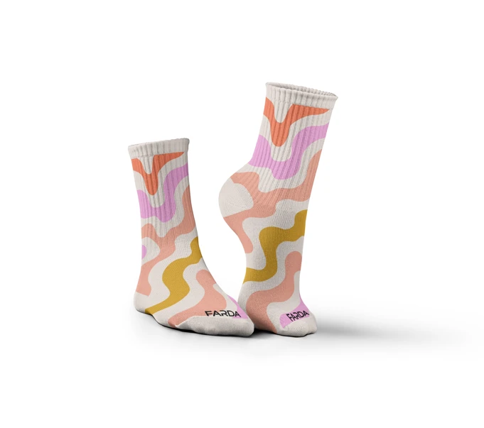 إذا كنت تحب تبدأ يومك بهدوء وأناقة، جوارب سلو موشن مصممة لك بالضبط ألوانها المتداخلة بين الوردي والمشمشي والبرتقالي تنساب بانسيابية ناعمة، كأنها موجة ناعمة من الأحلام تلفّ حول خطواتك بخفة وأناقة تصميم مستوحى من المزاج الحالم، يجمع بين الراحة والستايل العصري اللي يخليك مميز بدون ما تحاول كل خطوة فيها ذوق، وكل لون فيها طاقة رايقة تفتح النفس
